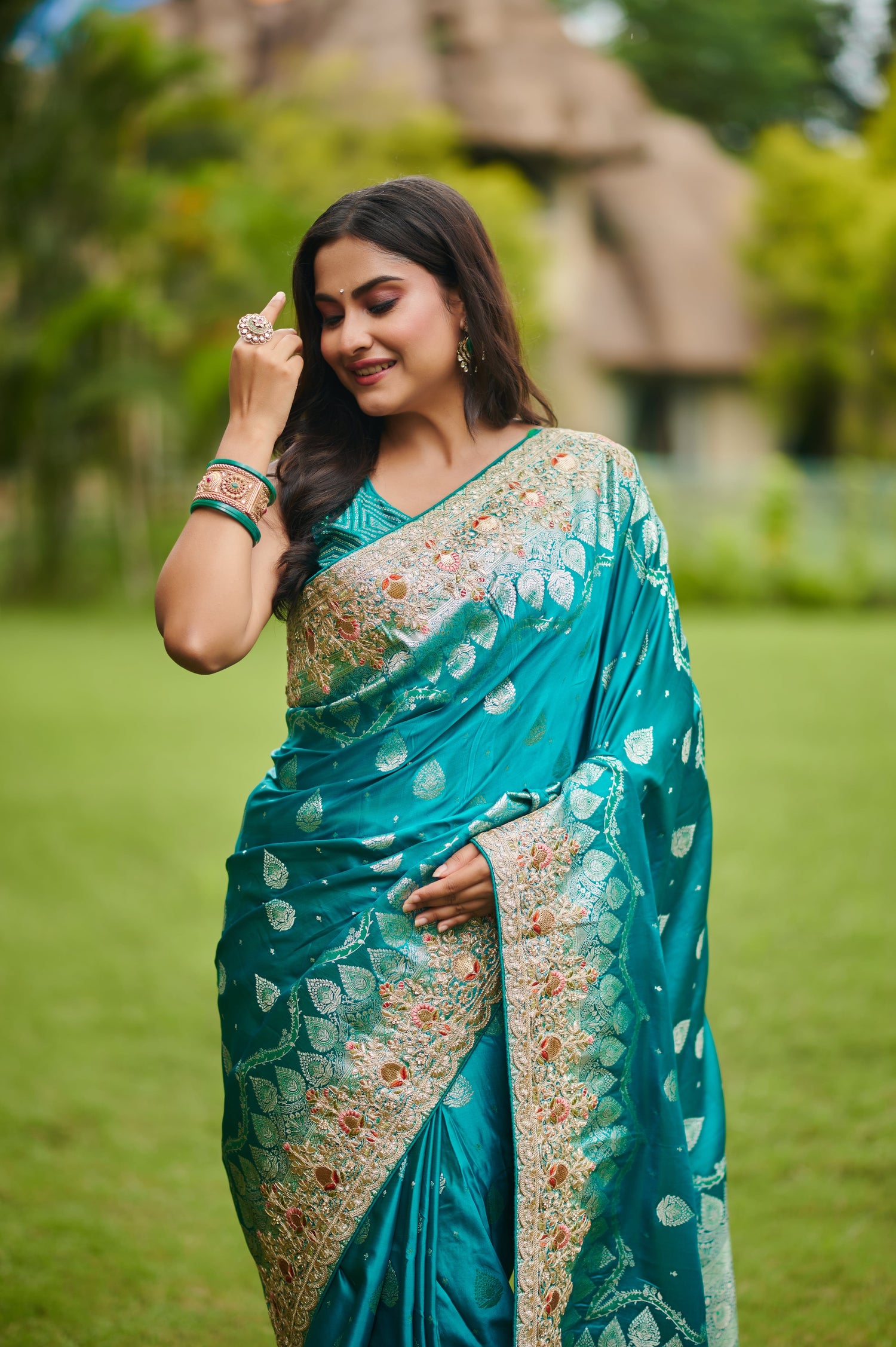 We offer a wide collection of designer sarees, bridal sarees, party wear lehengas, and festive outfits. Each piece is crafted with premium fabrics like silk, georgette, chiffon, organza, and embellished with intricate embroidery or handwork.
